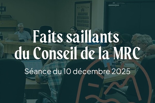 Soulignons qu'en plus des attributions à ces comités internes, les élus et élues ont également procédé à quelques nominations sur des comités externes : Jean Malo siègera au Conseil régional du patrimoine de la MRC ainsi qu'au Comité consultatif culturel, tandis que Guylaine Gagnon a été désigné au Comité consultatif régional Chaudière-Appalaches et que Cynthia Lapointe représentera la MRC de Bellechasse sur le conseil d'administration de la SADC Bellechasse-Etchemins.